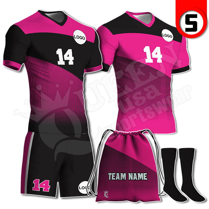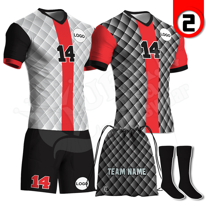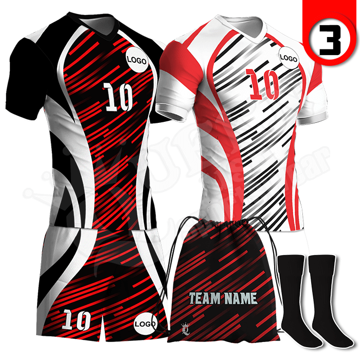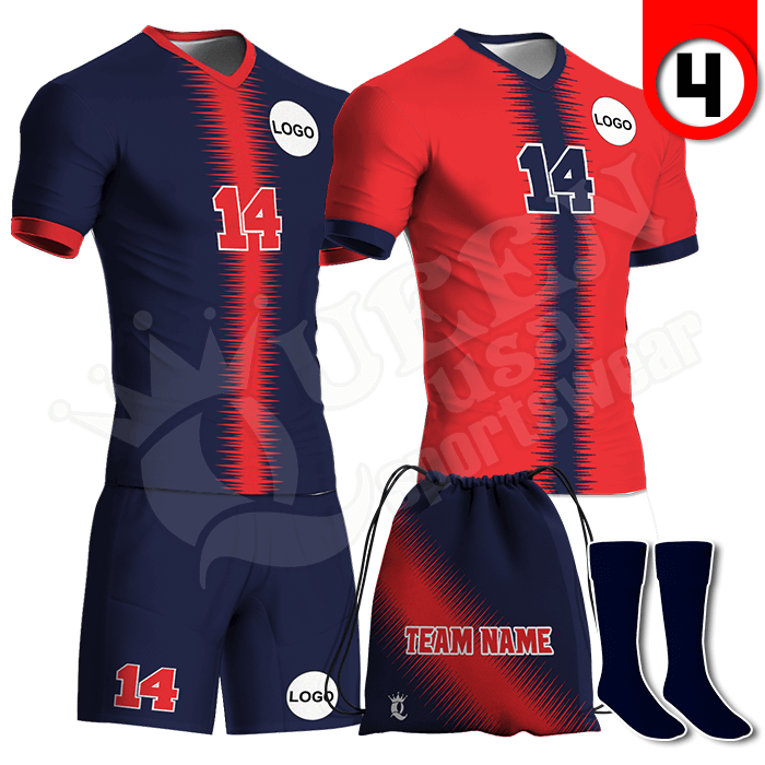 • The custom dye sublimated soccer uniforms with free logo and numbers (front, back and on the shorts)