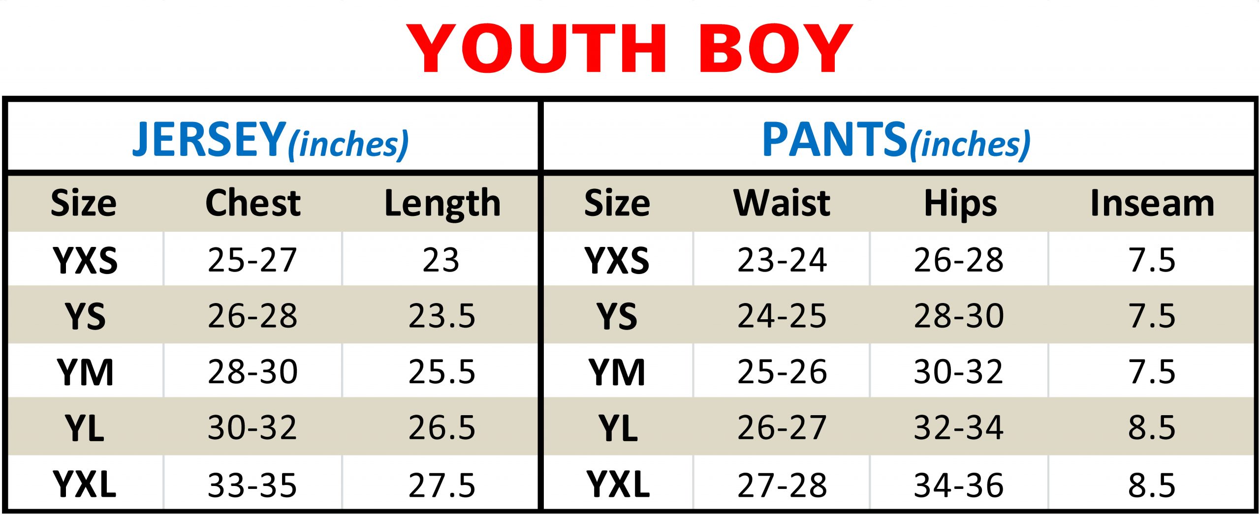 Our size chart is based on body measurement; choose the size by looking at our size chart. For flag football uniform, our factory typically adds 2-4 inches to the specified measurements, especially for our loose-fitting uniforms. But you only need your actual body measurement to figure out your size.  For example, if your youth boy player’s chest size is 28-30 inches, you would just order a size YM, but expect the jersey chest measurement to be 32-34 inches because again we add 2-4 inches to our flag football uniform for loose fitting so they are not tight fitting.