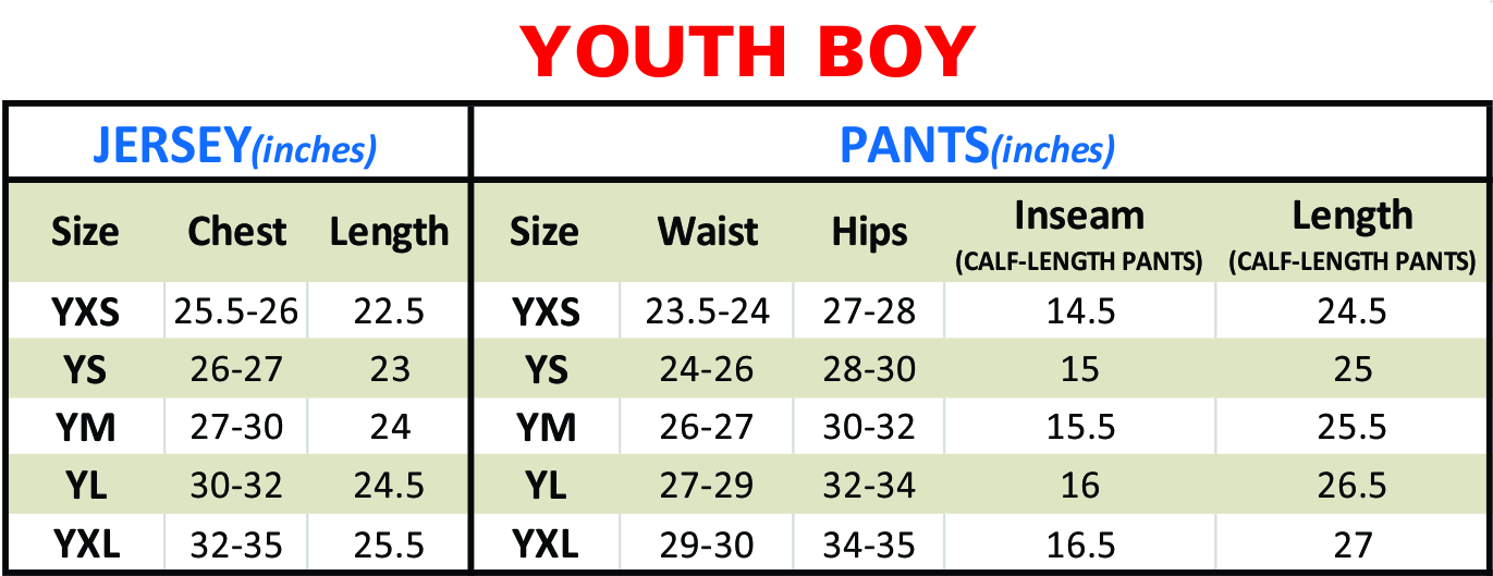 Our size chart is based on body measurement; choose the size by looking at our size chart. For baseball uniform, our factory typically adds 2-4 inches to the specified measurements, especially for our loose-fitting uniforms. But you only need your actual body measurement to figure out your size. For example, if your youth boy player’s chest size is 27-30 inches, you would just order a size YM, but expect the jersey chest measurement to be 31-34 inches because again we add 2-4 inches to our baseball uniform for loose fitting so they are not tight fitting.